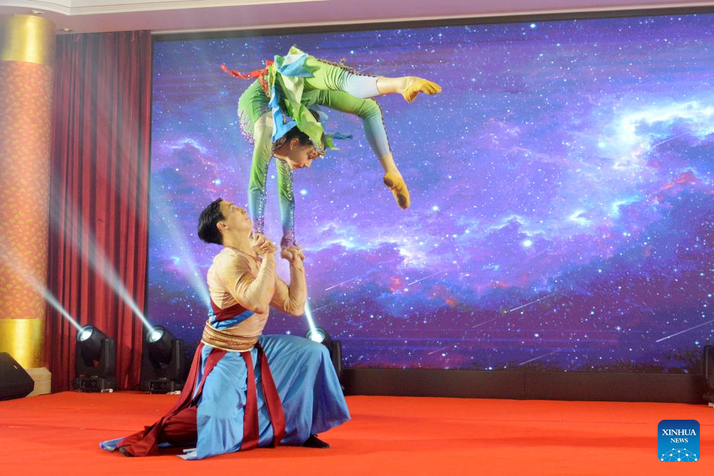 PHNOM PENH, 8 noviembre, 2025 (Xinhua) -- Artistas chinas realizan una presentación durante una jornada de puertas abiertas en la Embajada de China en Camboya, en Phnom Penh, Camboya, el 8 de noviembre de 2025. La Embajada de China en Camboya organizó el sábado una jornada de puertas abiertas, dando la bienvenida a cientos de jóvenes camboyanos. El evento contó con una variedad de actividades como presentaciones culturales, gastronomía y caligrafía chinas, entre otras. (Xinhua/Phearum)