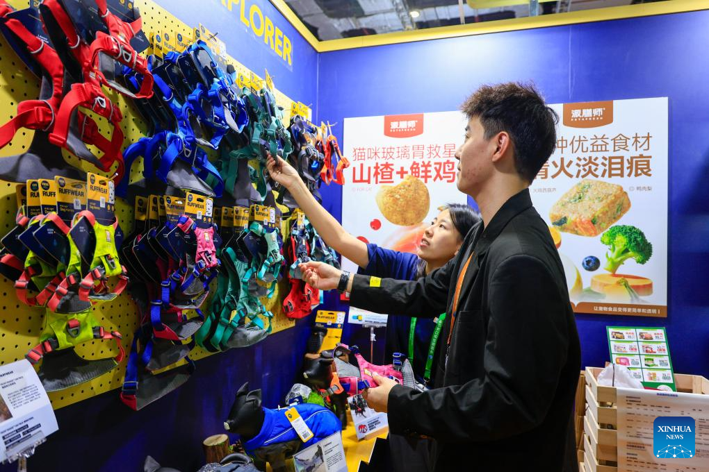 SHANGHAI, 8 noviembre, 2025 (Xinhua) -- Un cliente (d) selecciona productos en una tienda de artículos para mascotas en el área de exposición de Bienes de Consumo durante la VIII Exposición Internacional de Importaciones de China (CIIE, por sus siglas en inglés), en Shanghai, en el este de China, el 8 de noviembre de 2025. En el área de exposición de Bienes de Consumo de la VIII CIIE se exhibieron de forma destacada prendas de vestir, productos químicos de uso diario, muebles para el hogar y productos culturales y deportivos, lo que refleja las tendencias de consumo mundiales y las mejoras en la calidad de vida. (Xinhua/Liu Jiaqi)