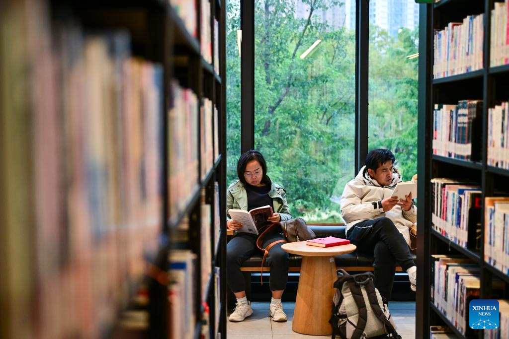 SHANGHAI, 9 noviembre, 2025 (Xinhua) -- Personas leen libros en una biblioteca pública, en Shanghai, en el este de China, el 9 de noviembre de 2025. En los últimos años, Shanghai se ha centrado en optimizar los distritos históricos y culturales, desarrollar áreas de estilo de vida cultural urbano, enriquecer la vida cultural de los ciudadanos y promover la profunda integración de la cultura y el turismo. (Xinhua/Cai Xiangxin)