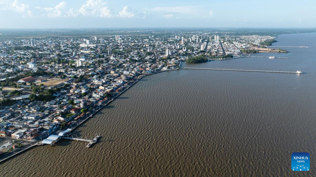 AMAPA, 10 noviembre, 2025 (Xinhua) -- Vista aérea tomada con un dron el 9 de noviembre de 2025 del punto donde la ciudad de Macapá se encuentra con el río Amazonas en el estado de Amapá, Brasil. Hoy, mientras la atención mundial se centra en la conservación del Amazonas, Macapá se erige como un claro ejemplo de armonía entre la vida humana y la naturaleza. (Xinhua/Wang Tiancong)