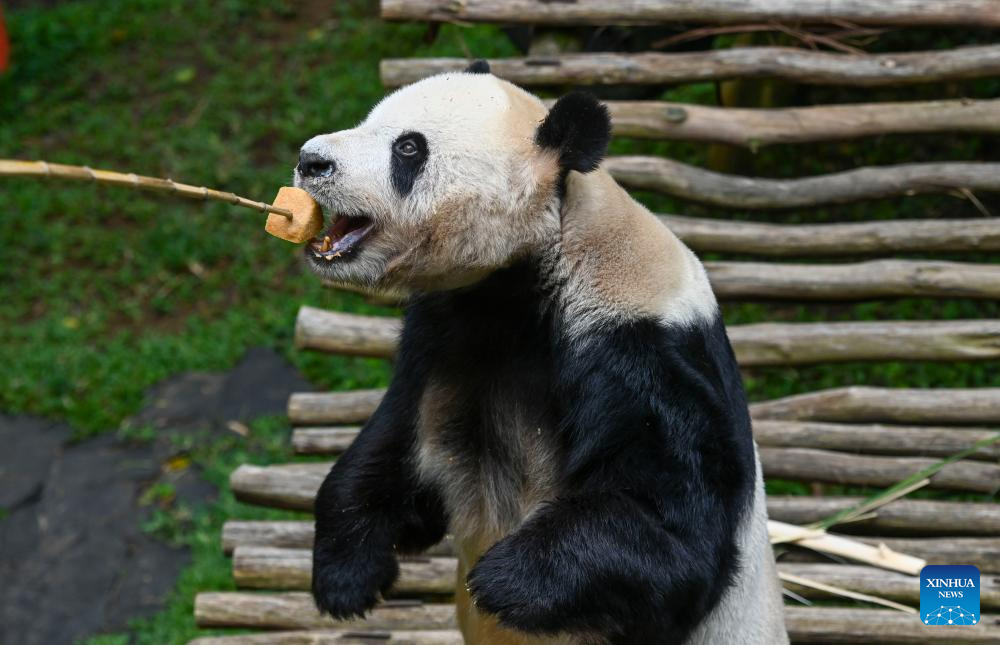 BOGOR, 10 noviembre, 2025 (Xinhua) -- Imagen del 7 de noviembre de 2025 del panda gigante Cai Tao visto en el Palacio de los Pandas del Taman Safari Indonesia, en Bogor, en la provincia de Java Occidental, Indonesia. Enclavado en una exuberante ladera a unos 1.800 metros sobre el nivel del mar, el Palacio de los Pandas es una de las atracciones más populares de Taman Safari Indonesia. (Xinhua/Zulkarnain)