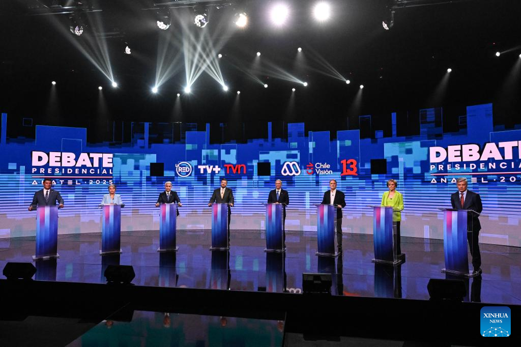 SANTIAGO, 11 nov (Xinhua) -- El último debate presidencial chileno con miras a las elecciones del próximo domingo 16 de noviembre, estuvo centrado en los temas de seguridad, la persecución del dinero ilegal y el ejercicio de mano dura con la migración, temas en que los candidatos buscan diferenciarse para alcanzar la segunda vuelta electoral.