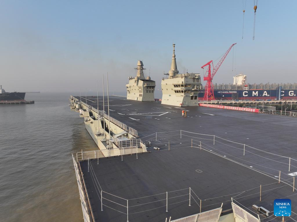SHANGHAI, 14 nov (Xinhua) -- "Sichuan", primer buque de asalto anfibio Tipo 076 de China, zarpó hoy viernes por la mañana desde la metrópoli oriental de Shanghai para llevar a cabo su primera misión de prueba de navegación.