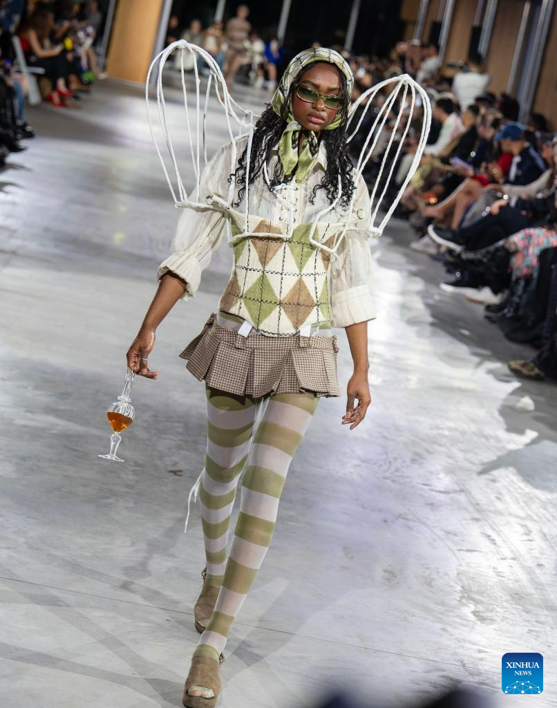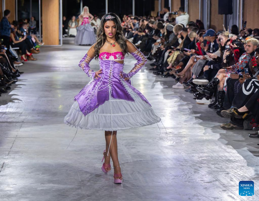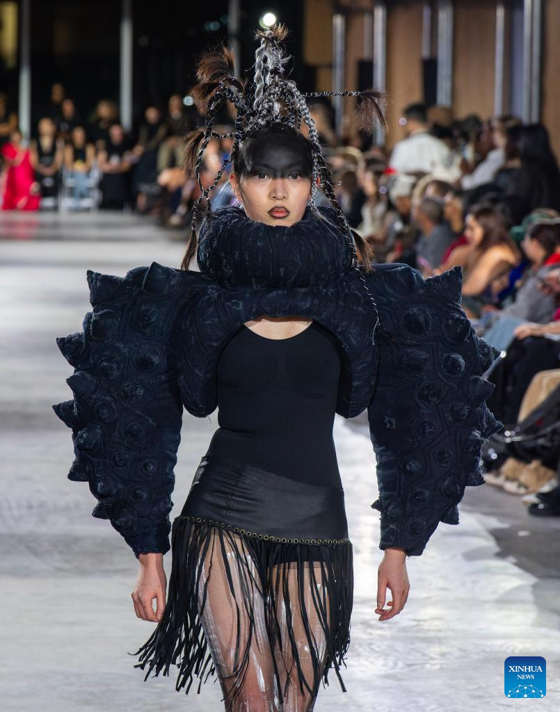 TORONTO, 15 noviembre, 2025 (Xinhua) -- Imagen del 14 de noviembre de 2025 de una modelo presentando una creación en la Semana de la Moda Otoño/Invierno 2025 de Fashion Art Toronto, en Toronto, Canadá. Con más de 40 desfiles y presentaciones, el evento anual se realiza aquí este año del 10 al 16 de noviembre. (Xinhua/Zou Zheng)