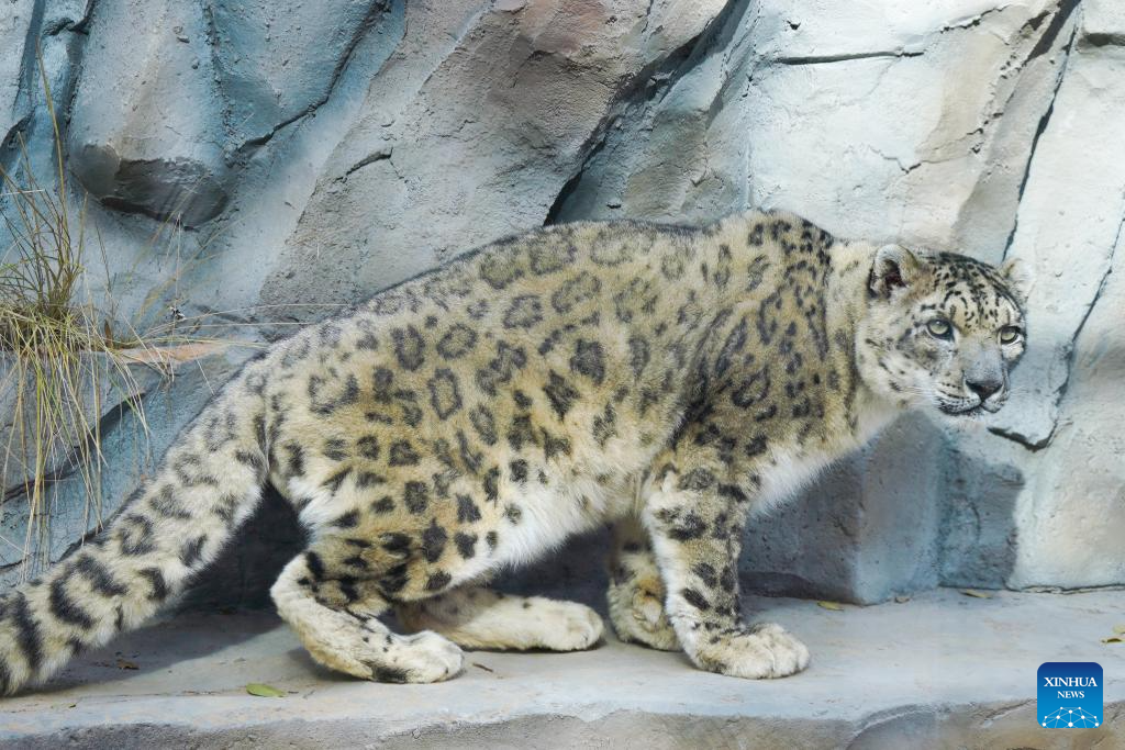 XINING, 15 noviembre, 2025 (Xinhua) -- Un leopardo de las nieves es visto en el Parque de Vida Silvestre de Xining, en la provincia de Qinghai, en el noroeste de China, el 15 de noviembre de 2025. La casa del leopardo del Parque de Vida Silvestre de Xining reabrió al público tras un mes de renovación. (Xinhua/Qi Zhiyue)