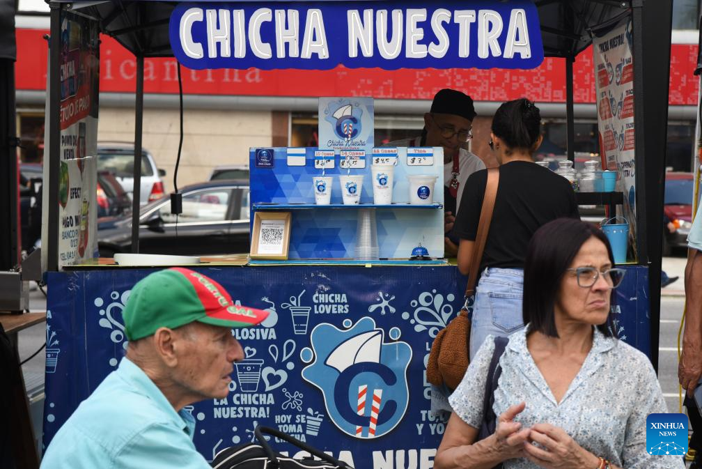 MIRANDA, 15 noviembre, 2025 (Xinhua) -- Personas caminan frente a un estand de venta de bebidas en una feria callejera, en Las Mercedes, estado Miranda, Venezuela, el 15 de noviembre de 2025. (Xinhua/Marcos Salgado)