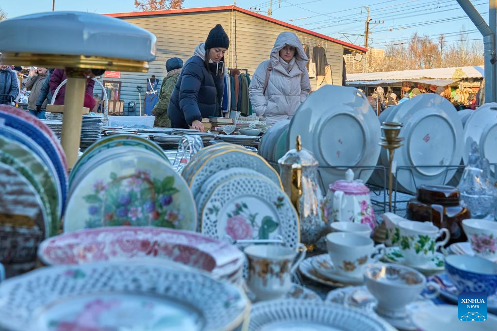 SAN PETERSBURGO, 16 noviembre, 2025 (Xinhua) -- Imagen del 15 de noviembre de 2025 de personas comprando vajillas en el Mercado de Pulgas de Udelka, uno de los mercados de pulgas más grandes de Rusia, en San Petersburgo, Rusia. (Xinhua/Guo Feizhou)