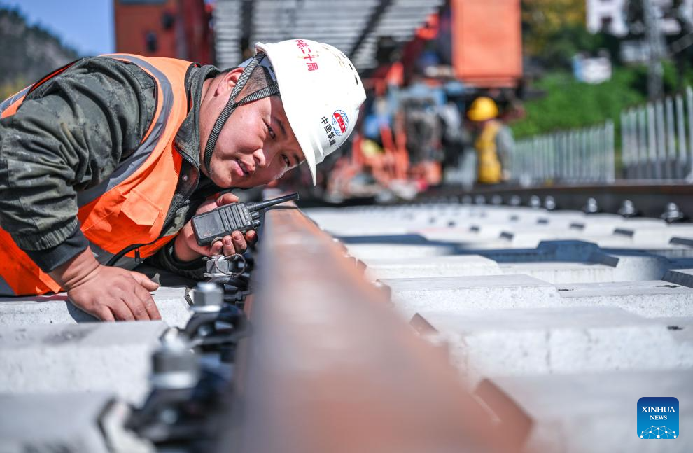 DUYUN, 16 noviembre, 2025 (Xinhua) -- Un trabajador es visto en el sitio de construcción de un puente a lo largo del proyecto de extensión del sur de la vía de ferrocarril Weng'an-Machangping, en la provincia de Guizhou, en el suroeste de China, el 16 de noviembre de 2025. Los trabajos de montaje de vigas y tendido de vías del tramo sur de la extensión sur-norte del ferrocarril Weng'an-Machangping se completaron con éxito el domingo. Este proyecto de extensión sur-norte de 148 kilómetros de la vía de ferrocarril Weng'an-Machangping es un proyecto clave para los ferrocarriles orientados a los recursos en la provincia de Guizhou. (Xinhua/Yang Wenbin)