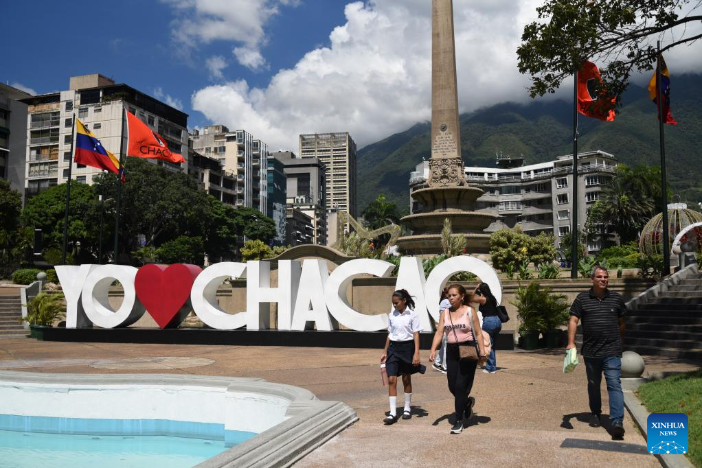 MIRANDA, 18 noviembre, 2025 (Xinhua) -- Personas caminan por una plaza, en Altamira, en el estado Miranda, Venezuela, el 18 de noviembre de 2025. (Xinhua/Marcos Salgado)