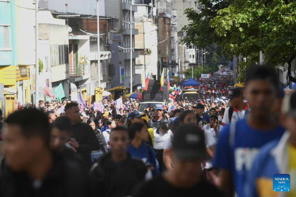 CARACAS, 21 noviembre, 2025 (Xinhua) -- Personas participan en una marcha por el Día del Estudiante Venezolano, en Caracas, Venezuela, el 21 de noviembre de 2025. Los estudiantes venezolanos se movilizaron el viernes en Caracas para celebrar su día y en defensa de la paz y la educación. (Xinhua/Marcos Salgado)