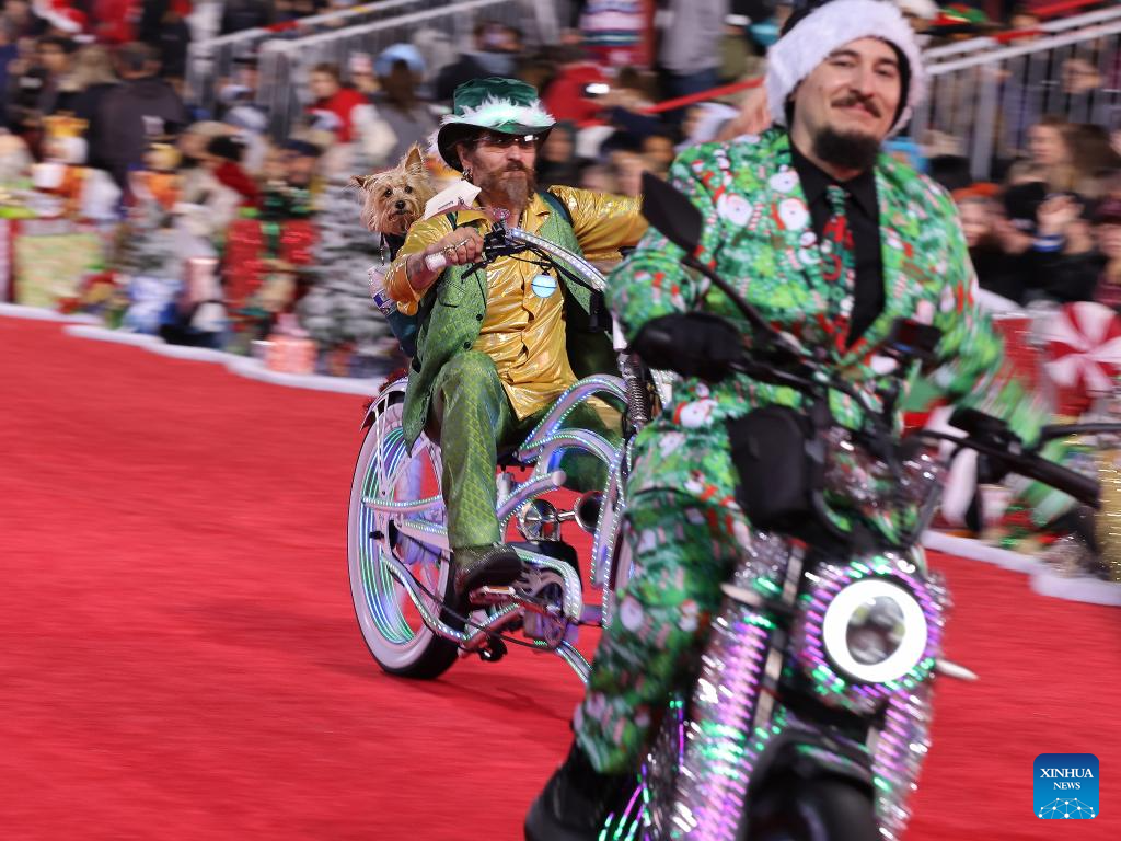 LOS ANGELES, 1 diciembre, 2025 (Xinhua) -- Imagen del 30 de noviembre de 2025 de participantes marchando por el Bulevar Hollywood durante el 93° Desfile Anual Navideño de Hollywood, en Los Angeles, California, Estados Unidos. (Xinhua/Qiu Chen)