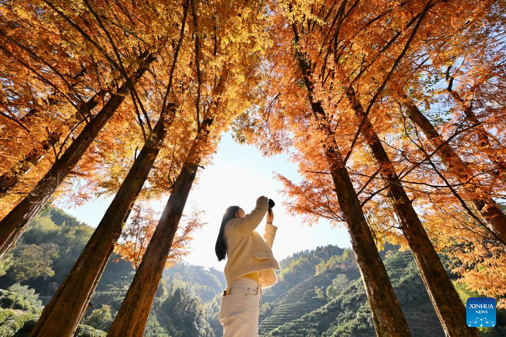 WUYISHAN, 2 diciembre, 2025 (Xinhua) -- Imagen del 1 de diciembre de 2025 de una viajera tomando fotografías, en el Parque Nacional Wuyishan, en la provincia de Fujian, en el sureste de China. (Xinhua/Jiang Kehong)