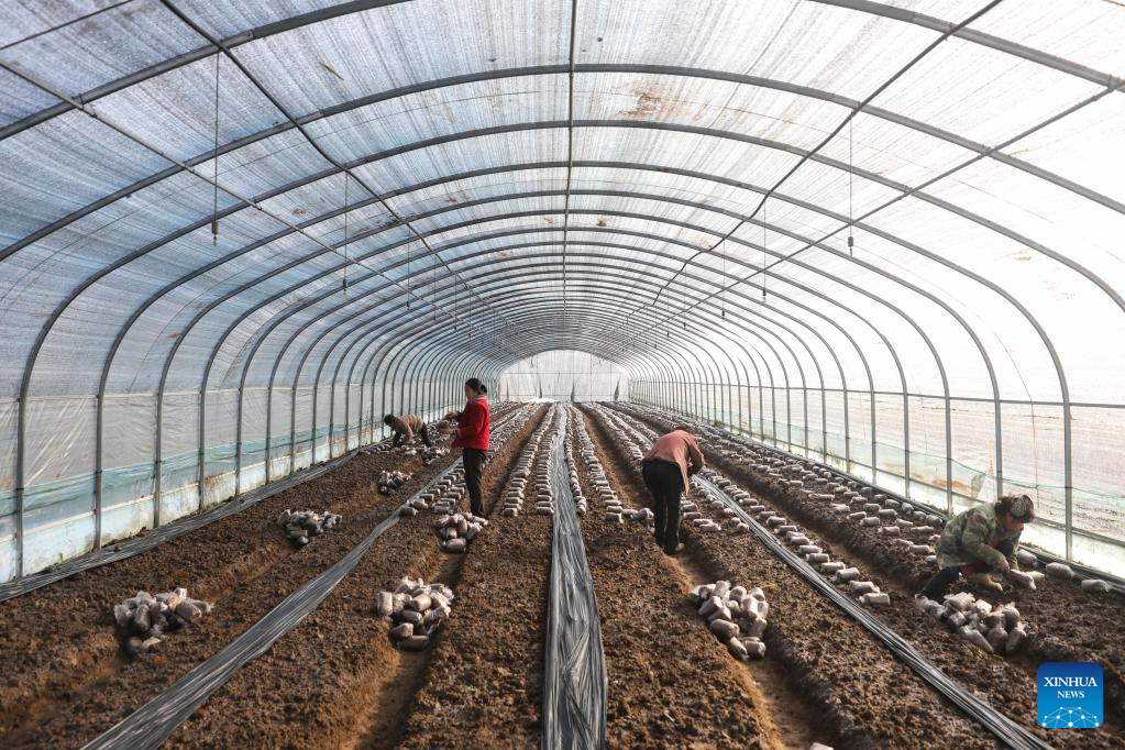BEIJING, 6 diciembre, 2025 (Xinhua) -- Agricultores trabajan en un invernadero de setas morillas, en la ciudad de Pingdingshan, en la provincia de Henan, en el centro de China, el 6 de diciembre de 2025. A medida que se acerca el término solar de la Gran Nevada, también conocido como "Da Xue" en chino, los agricultores están atareados con la producción agrícola en todo el país. (Xinhua/He Wuchang)