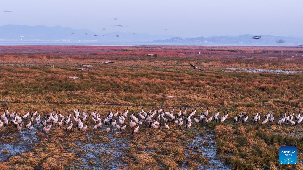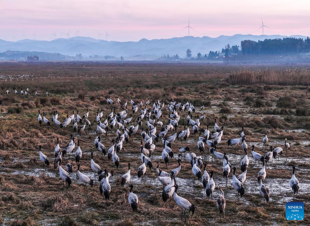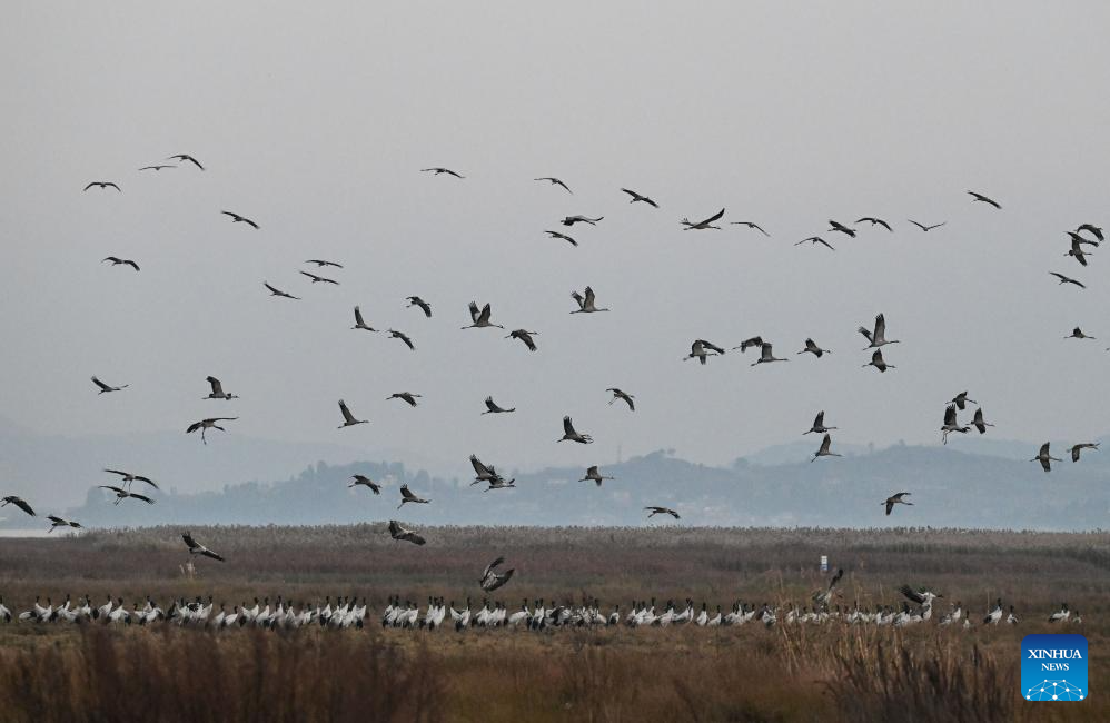 Reserva natural ha sido testigo de la temporada alta de migración de grullas de cuello negro en Guizhou