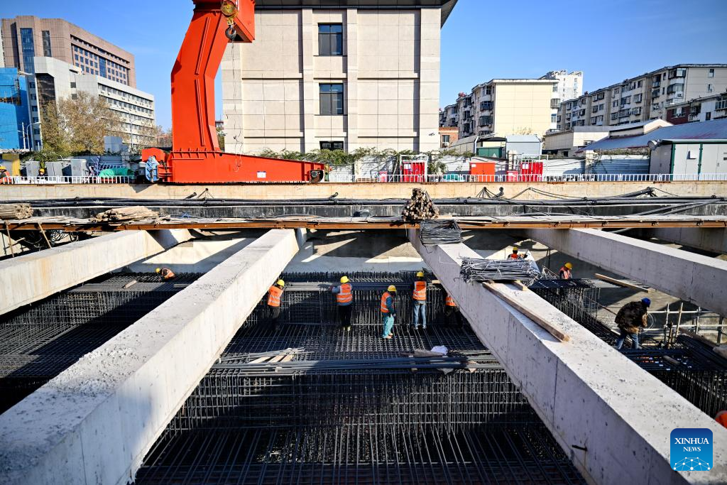 SHIJIAZHUANG, 9 diciembre, 2025 (Xinhua) -- Trabajadores vistos en el sitio de construcción de la línea 5 del metro de Shijiazhuang, en Shijiazhuang, en la provincia de Hebei, en el norte de China, el 9 de diciembre de 2025. La construcción de la línea 5 del metro de Shijiazhuang avanza de forma constante con varios tramos perforados en dos direcciones. (Xinhua/Mu Yu)