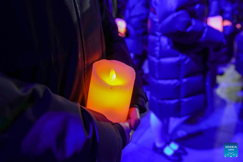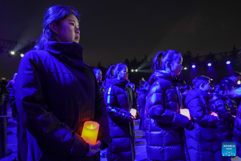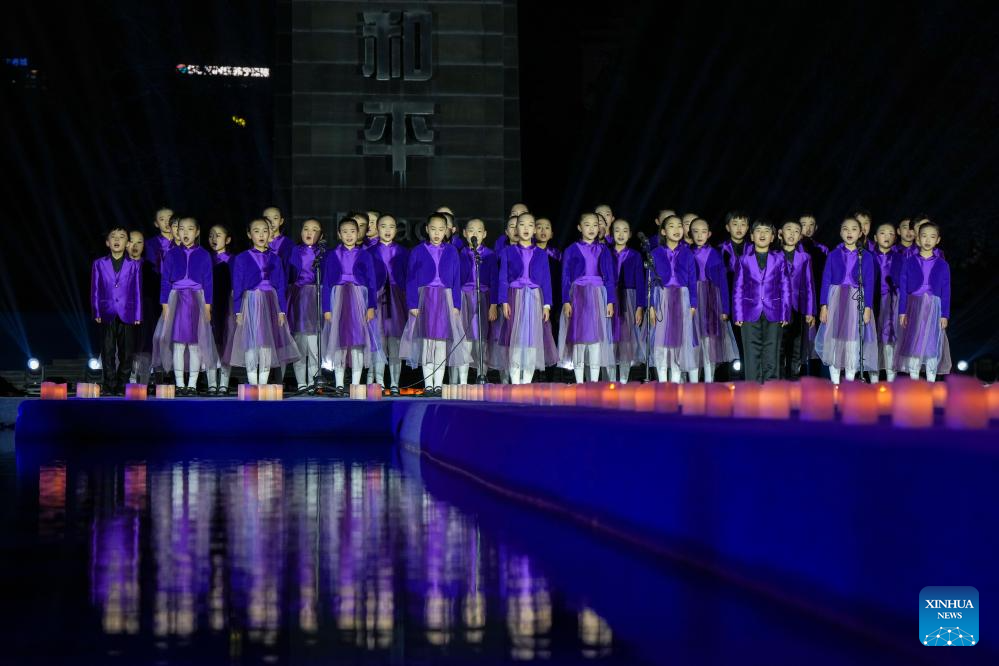 NANJING, 13 diciembre, 2025 (Xinhua) -- Estudiantes cantan durante una vigilia con velas encendidas en el Salón Conmemorativo de las Víctimas de la Masacre de Nanjing cometida por los Invasores Japoneses, en Nanjing, capital de la provincia de Jiangsu, en el este de China, el 13 de diciembre de 2025. Una vigilia con velas encendidas se llevó a cabo el sábado en el salón conmemorativo, que fue el 12º día nacional de conmemoración por las víctimas de la Masacre de Nanjing. (Xinhua/Li Bo)