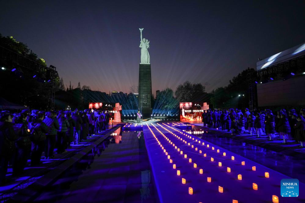 NANJING, 13 diciembre, 2025 (Xinhua) -- Personas asisten a una vigilia con velas encendidas en el Salón Conmemorativo de las Víctimas de la Masacre de Nanjing cometida por los Invasores Japoneses, en Nanjing, capital de la provincia de Jiangsu, en el este de China, el 13 de diciembre de 2025. Una vigilia con velas encendidas se llevó a cabo el sábado en el salón conmemorativo, que fue el 12º día nacional de conmemoración por las víctimas de la Masacre de Nanjing. (Xinhua/Li Bo)