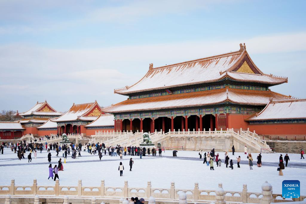 BEIJING, 13 diciembre, 2025 (Xinhua) -- Turistas visitan el Museo del Palacio tras una nevada, en Beijing, capital de China, el 13 de diciembre de 2025. (Xinhua/Jin Liangkuai)