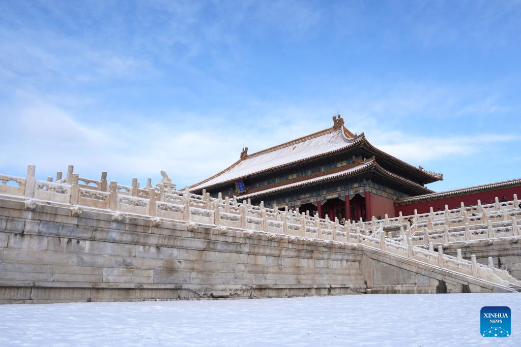 BEIJING, 13 diciembre, 2025 (Xinhua) -- Imagen del 13 de diciembre de 2025 de una vista parcial de los edificios del Museo del Palacio tras una nevada, en Beijing, China. (Xinhua/Ma Xiaodong)