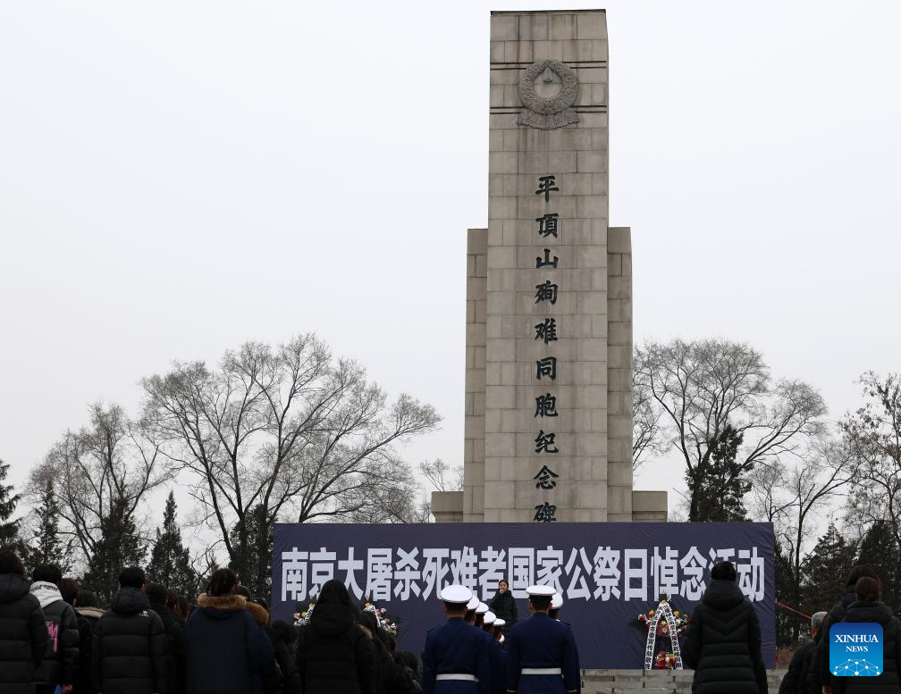 BEIJING, 13 diciembre, 2025 (Xinhua) -- Una ceremonia conmemorativa para las víctimas de la Masacre de Nanjing se lleva a cabo en el Salón Conmemorativo de la Masacre de Pingdingshan, en Fushun, en la provincia de Liaoning, en el noreste de China, el 13 de diciembre de 2025. El 12º día nacional de conmemoración en honor a las 300.000 víctimas asesinadas por las tropas japonesas durante la Masacre de Nanjing se celebró el sábado en esta ciudad china, en un año en el que se cumple el 80º aniversario del fin de la Segunda Guerra Mundial. (Xinhua/Li Gang)