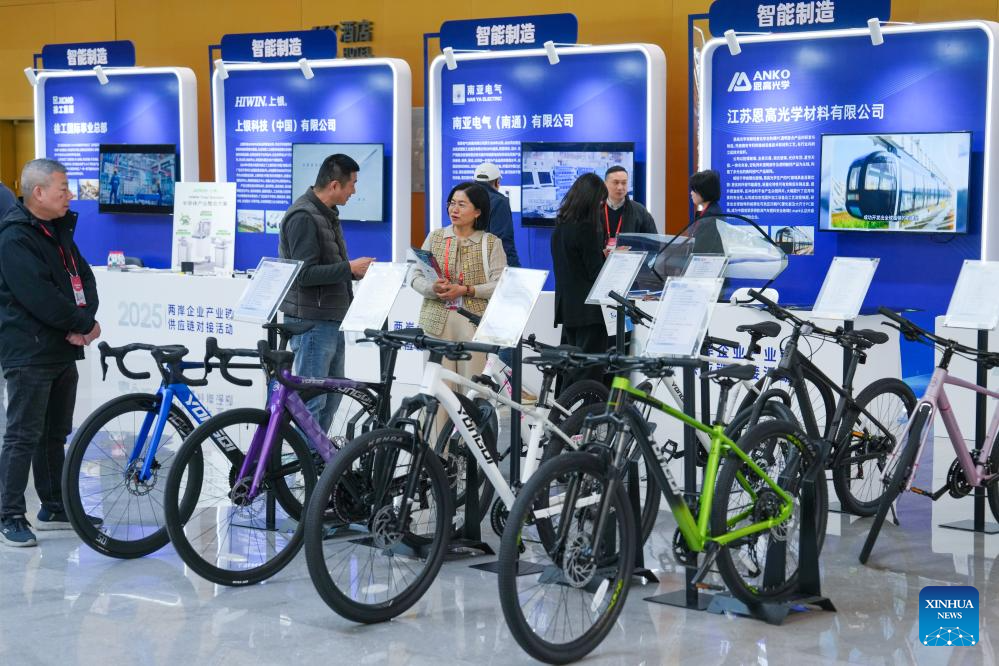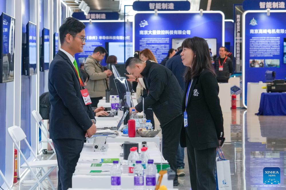 NANJING, 16 diciembre, 2025 (Xinhua) -- Participantes visitan un área de exposición de la conferencia anual 2025 de la Cumbre de Directores Ejecutivos a través del Estrecho, en Nanjing, en la provincia de Jiangsu, en el este de China, el 16 de diciembre de 2025. La conferencia anual 2025 de la Cumbre de Directores Ejecutivos a través del Estrecho fue inaugurada aquí el martes. Cerca de 800 personas procedentes de la parte continental de China y Taiwan se reunieron el martes en Nanjing para debatir sobre la transformación industrial, la innovación y la cooperación entre ambos lados del estrecho. (Xinhua/Li Bo)
