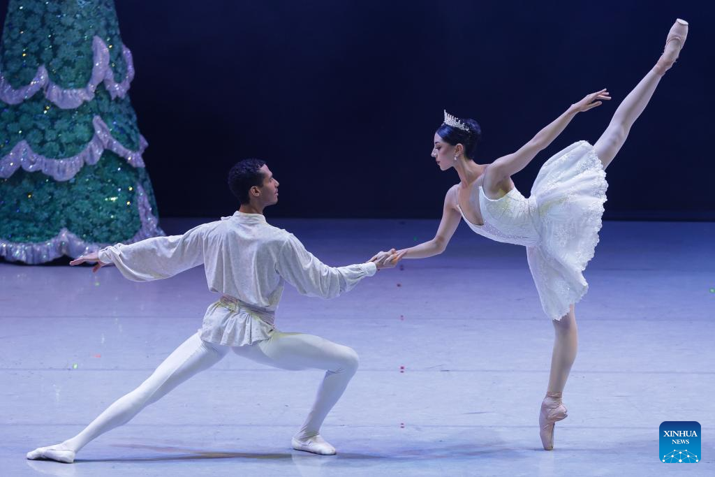 CIUDAD DE MEXICO, 19 diciembre, 2025 (Xinhua) -- Imagen del 18 de diciembre de 2025 de bailarines de la Compañía Nacional de Danza de México presentado "El Cascanueces" en el Auditorio Nacional, en la Ciudad de México, capital de México. (Xinhua/Francisco Canedo)