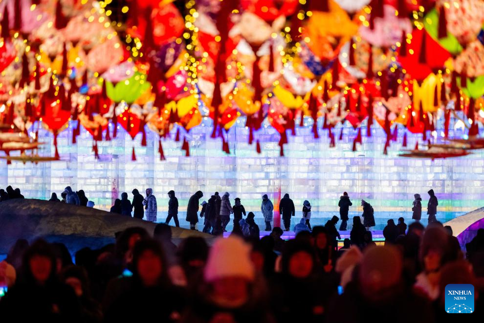 MANZHOULI, 20 diciembre, 2025 (Xinhua) -- Personas visitan un parque temático de hielo y nieve, en Manzhouli, en la región autónoma de Mongolia Interior, en el norte de China, el 20 de diciembre de 2025. El 22 festival internacional de hielo y nieve China-Rusia-Mongolia se inauguró aquí el sábado. El parque temático creado para el festival cubre una superficie de 128.000 metros cuadrados. (Xinhua/Lian Zhen)