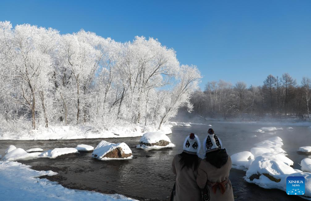 XUNKE, 26 diciembre, 2025 (Xinhua) -- Turistas visitan un punto escénico con temática de escarcha, en el distrito de Xunke, en la provincia de Heilongjiang, en el noreste de China, el 26 de diciembre de 2025. (Xinhua/Wang Dong)
