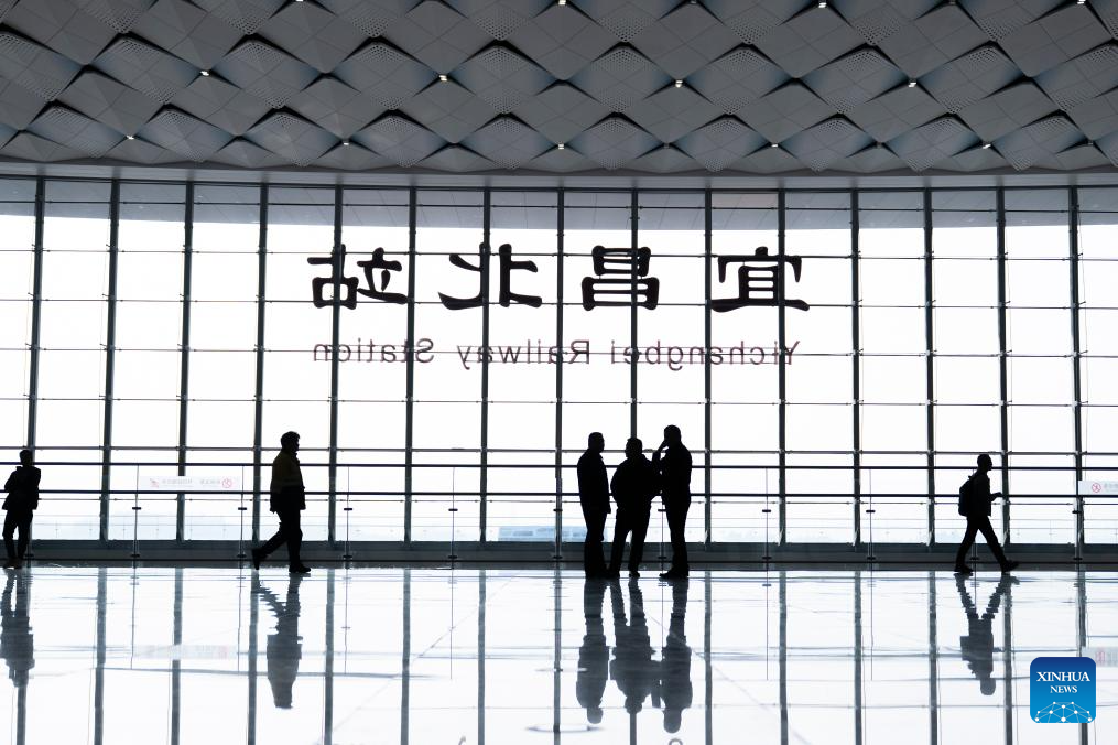 YICHANG, 26 diciembre, 2025 (Xinhua) -- Pasajeros son vistos en la sala de espera de la Estación del Ferrocarril Norte de Yichang, en Yichang, en la provincia de Hubei, en el centro de China, el 26 de diciembre de 2025. La sección Wuhan-Yichang de un ferrocarril de alta velocidad que conecta Shanghai del este de China, Chongqing del suroeste de China, y Chengdu de la provincia de Sichuan, en el suroeste de China, entró oficialmente en funcionamiento el viernes. Con una longitud total de 314 kilómetros y una velocidad diseñada de 350 kilómetros por hora, la sección Wuhan-Yichang del ferrocarril forma parte de la red ferroviaria de alta velocidad de China a lo largo del río Yangtse. (Xinhua/Wu Zhizun)