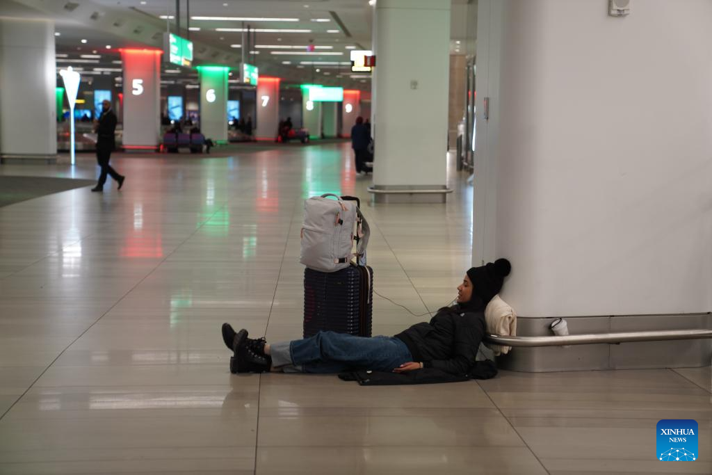 NUEVA YORK, 27 diciembre, 2025 (Xinhua) -- Imagen del 26 de diciembre de 2025 de una pasajera varada vista en el Aeropuerto LaGuardia, en Nueva York, Estados Unidos. Una tormenta de nieve azotó Nueva York el viernes, lo que provocó retrasos y cancelaciones de vuelos. (Xinhua/Zhang Fengguo)