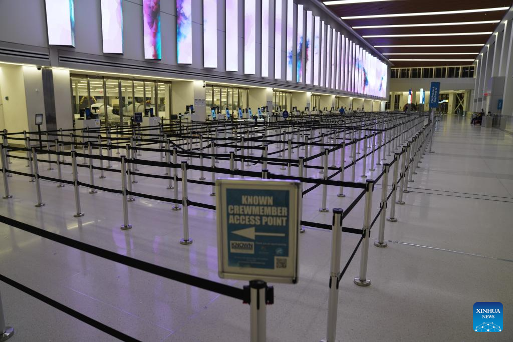 NUEVA YORK, 27 diciembre, 2025 (Xinhua) -- Imagen del 26 de diciembre de 2025 de una zona de registro vacía en el Aeropuerto LaGuardia, en Nueva York, Estados Unidos. Una tormenta de nieve azotó Nueva York el viernes, lo que provocó retrasos y cancelaciones de vuelos. (Xinhua/Zhang Fengguo)