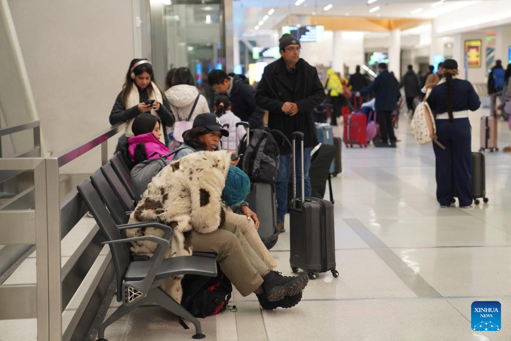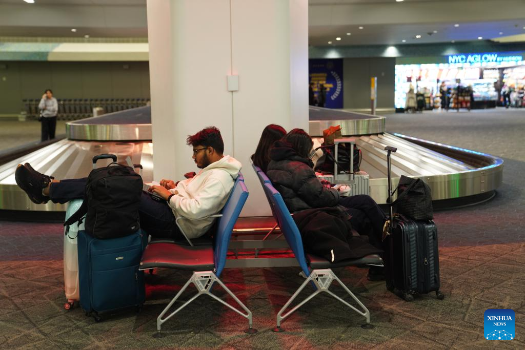 NUEVA YORK, 27 diciembre, 2025 (Xinhua) -- Imagen del 26 de diciembre de 2025 de pasajeros varados vistos en el Aeropuerto LaGuardia, en Nueva York, Estados Unidos. Una tormenta de nieve azotó Nueva York el viernes, lo que provocó retrasos y cancelaciones de vuelos. (Xinhua/Zhang Fengguo)