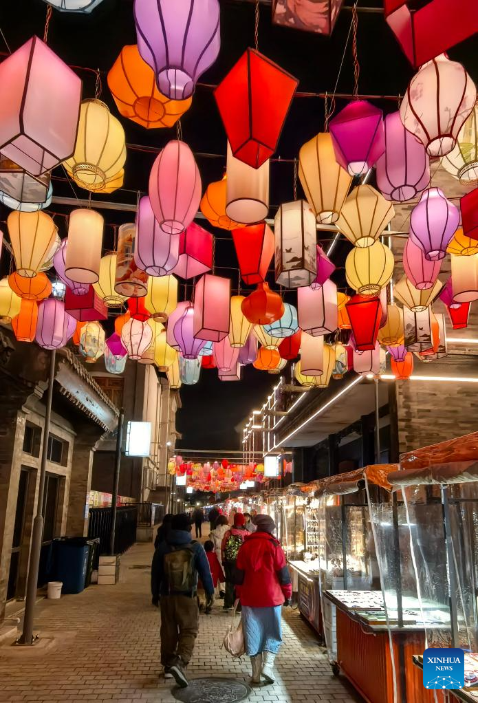 BEIJING, 27 diciembre, 2025 (Xinhua) -- Imagen del 26 de diciembre de 2025 de linternas colgadas sobre la calle peatonal Qianmen, en Beijing, capital de China. A medida que se acerca el Año Nuevo, la calle peatonal Qianmen, una emblemática calle comercial de Beijing, está decorada con diversos festones. (Xinhua/Li Xin)