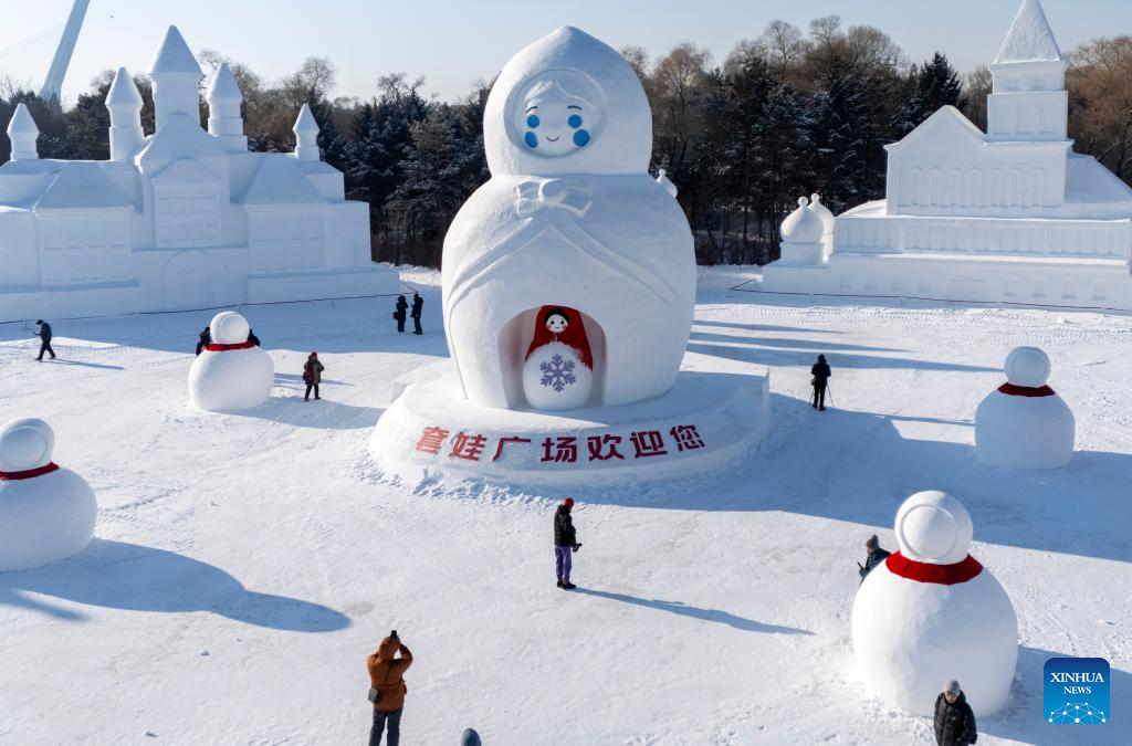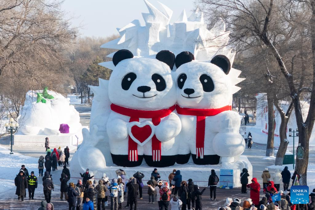 HARBIN, 27 diciembre, 2025 (Xinhua) -- Personas visitan la 38 Exposición Internacional de Arte de Esculturas de Nieve de la Isla del Sol, en Harbin, en la provincia de Heilongjiang, en el noreste de China, el 27 de diciembre de 2025. La 38 Exposición Internacional de Arte de Esculturas de Nieve de la Isla del Sol se inauguró aquí para su prueba el sábado, con un área de exposición de 1,5 millones de metros cuadrados y un volumen de utilización de nieve de 120.000 metros cúbicos. (Xinhua/Zhang Tao)