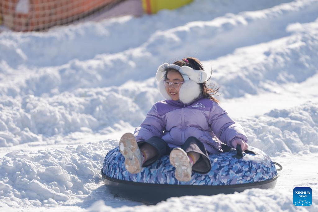 BEIJING, 27 diciembre, 2025 (Xinhua) -- Una niña disfruta deslizándose en un trineo para nieve inflable afuera del Estadio Nacional, también conocido como el Nido de Pájaro, en Beijing, capital de China, el 27 de diciembre de 2025. El parque temático de invierno del Nido de Pájaro comenzó el sábado y permanecerá abierto hasta finales de febrero de 2026. El evento cuenta con una zona de actividades sobre hielo y nieve, y una zona de moda y ocio al aire libre. (Xinhua/Xie Han)