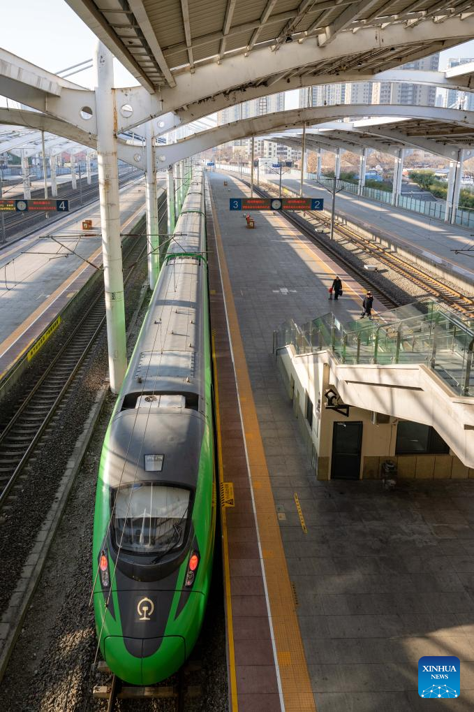 HEBEI, 27 diciembre, 2025 (Xinhua) -- El tren C125 para en la Estación del Ferrocarril de Baoding a lo largo del Ferrocarril Tianjin-Baoding, en Baoding, en la provincia de Hebei, en el norte de China, el 27 de diciembre de 2025. El Ferrocarril Tianjin-Baoding, que comenzó sus operaciones el 28 de diciembre de 2015, está a punto de celebrar el décimo aniversario de su inauguración. La línea ha transportado un total de 98,073 millones de pasajeros hasta el 30 de noviembre. (Xinhua/Zhang Yudong)