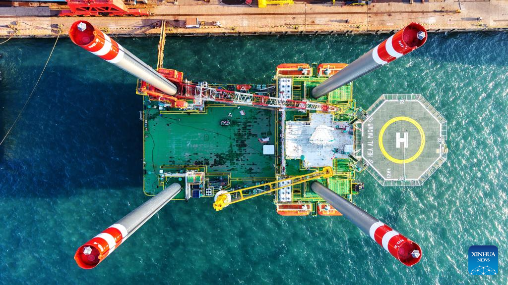 JINAN, 28 diciembre, 2025 (Xinhua) -- Vista aérea tomada con un dron el 24 de diciembre de 2025 de una plataforma de trabajo marítima en construcción en la Base Industrial de Construcción Naval e Ingeniería Marina de la Bahía de Haixi, en Qingdao, en la provincia de Shandong, en el este de China. En los últimos años, Shandong se ha comprometido a construir un clúster industrial de alta gama que integre la construcción naval y los equipos de ingeniería marina en la península de Shandong, emprendiendo una senda de desarrollo de alta calidad impulsada por la economía marina. (Xinhua/Yu Fangping)