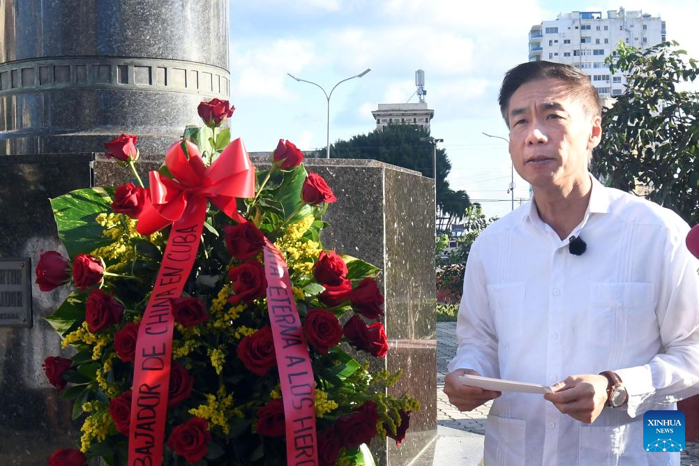 LA HABANA, 30 dic (Xinhua) -- En un acto de simbolismo histórico, el embajador de China en Cuba, Hua Xin, depositó hoy martes una ofrenda floral ante el Monumento al Soldado Chino en La Habana y destacó la contribución de la comunidad china al desarrollo del país caribeño y América Latina.