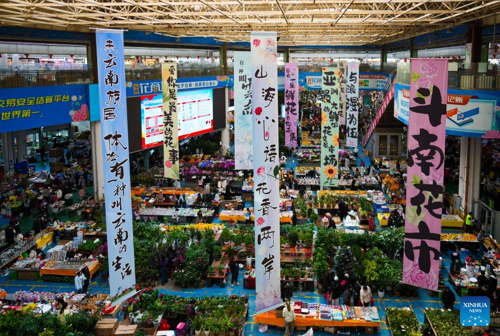 KUNMING, 31 diciembre, 2025 (Xinhua) -- Personas visitan el Mercado de Flores de Dounan, en Kunming, en la provincia de Yunnan, en el suroeste de China, el 31 de diciembre de 2025. A medida que se acerca el Año Nuevo, el Mercado de Flores de Dounan, en Kunming, conocida como la "capital de las flores de Asia", se va animando gradualmente. (Xinhua/Chen Xinbo)
