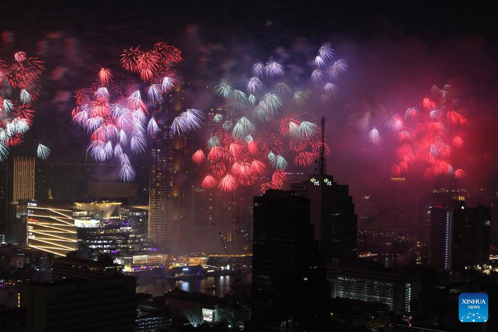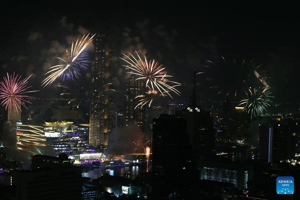 BANGKOK, 31 diciembre, 2025 (Xinhua) -- Fuegos artificiales explotan sobre el río Chao Phraya en celebración del Año Nuevo, en Bangkok, Tailandia, el 1 de enero de 2026. (Xinhua/Rachen Sageamsak)