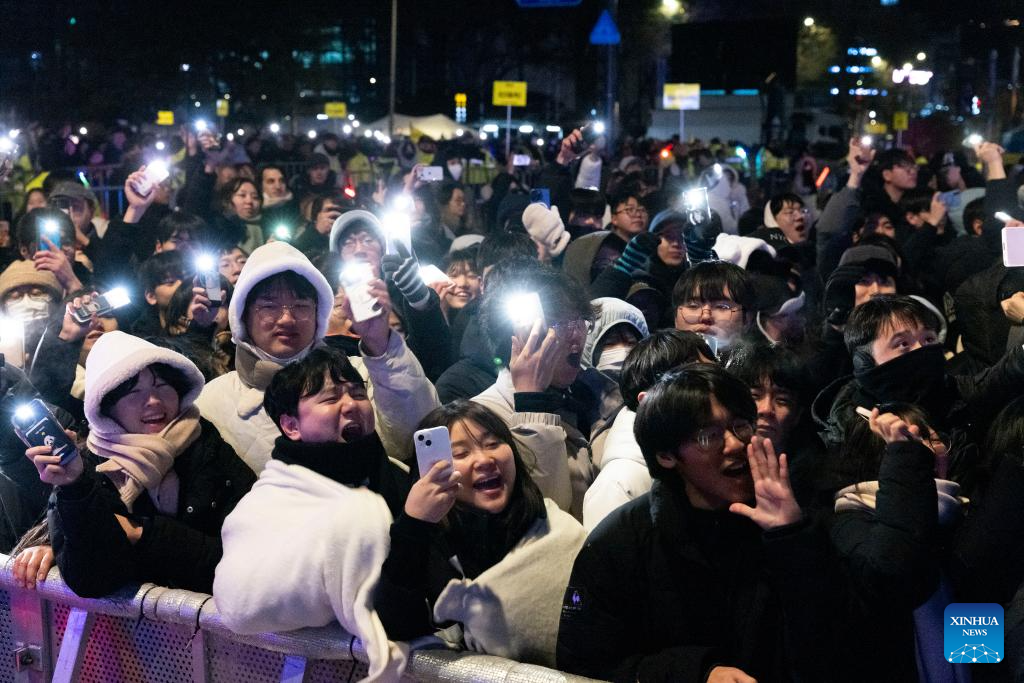 SEUL, 31 diciembre, 2025 (Xinhua) -- Personas se reúnen en la calle para celebrar el Año Nuevo, en Seúl, República de Corea, el 1 de enero de 2026. (Xinhua/Jun Hyosang)