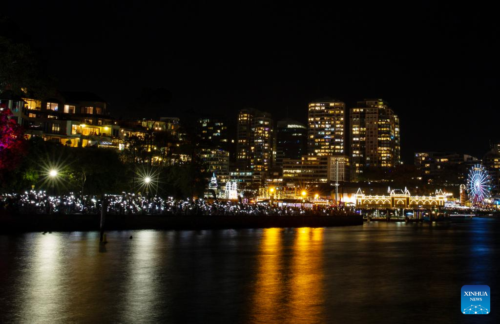 SIDNEY, 31 diciembre, 2025 (Xinhua) -- Participantes guardan un minuto de silencio en el Puente del Puerto, en Sídney, Australia, el 31 de diciembre de 2025. Se guardó un minuto de silencio durante un espectáculo de fuegos artificiales, con el Puente del Puerto iluminado de blanco, para conmemorar a las víctimas del tiroteo masivo ocurrido en la playa Bondi de Sídney. (Xinhua/Ma Ping)
