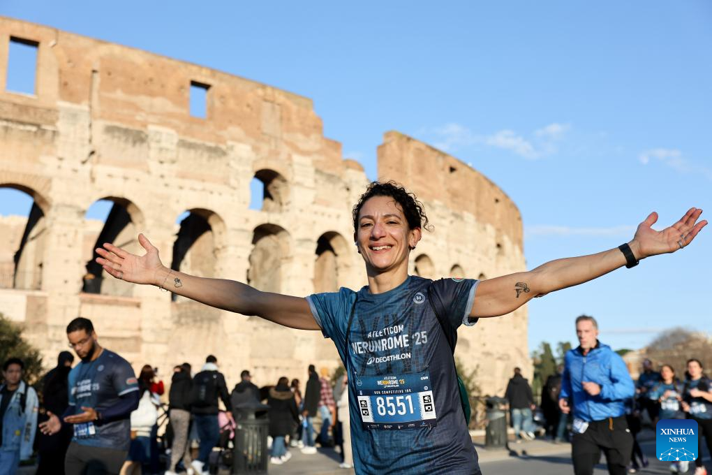 ROMA, 31 diciembre, 2025 (Xinhua) -- Imagen del 31 de diciembre de 2025 de personas corriendo junto al Coliseo durante el evento "We Run Rome" para celebrar el próximo Año Nuevo, en Roma, Italia. (Xinhua/Li Jing)