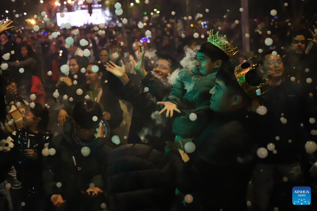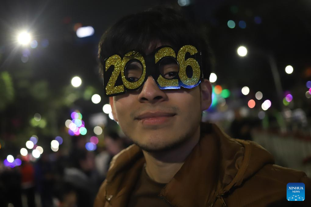 CIUDAD DE MEXICO, 1 enero, 2026 (Xinhua) -- Imagen del 31 de diciembre de 2025 de personas celebrando el Año Nuevo, en la Ciudad de México, capital de México. (Xinhua/Daniel Augusto)