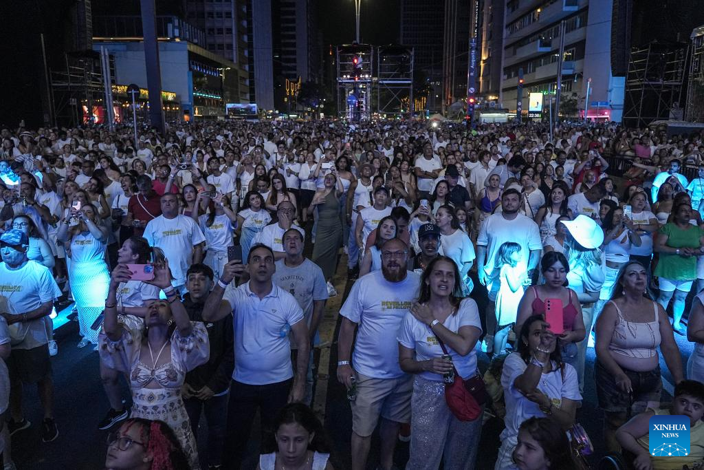 SAO PAULO, 1 enero, 2026 (Xinhua) -- Imagen del 31 de diciembre de 2025 de personas asistiendo a un concierto durante la celebración de Año Nuevo, en Sao Paulo, Brasil. (Xinhua/Paulo Lopes)