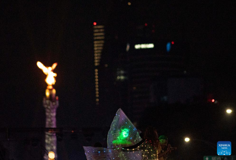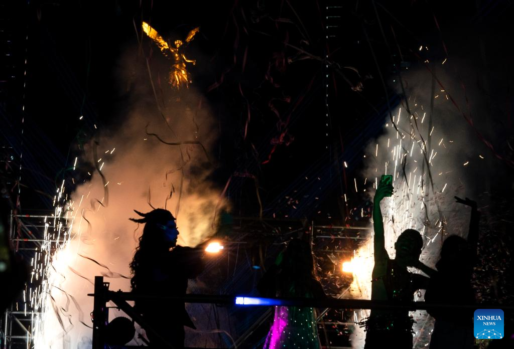 CIUDAD DE MEXICO, 1 enero, 2026 (Xinhua) -- Imagen del 1 de enero de 2026 de una escena captada durante el Festejo de Año Nuevo en el Angel de la Independencia, en la Ciudad de México, capital de México. (Xinhua/David de la Paz)