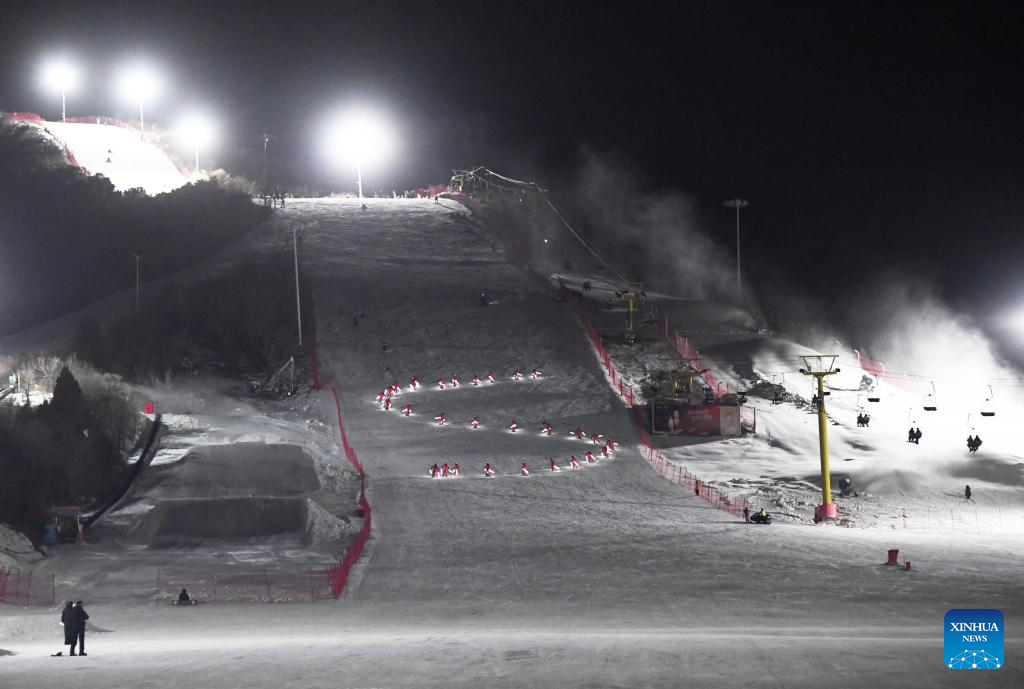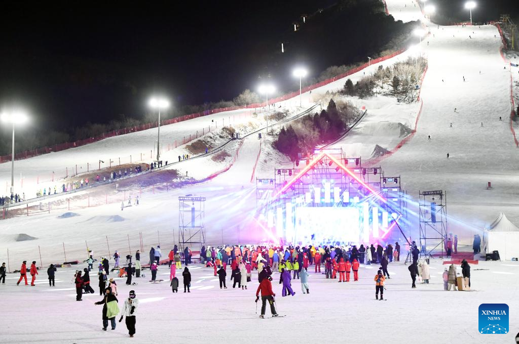 BEIJING, 1 enero, 2026 (Xinhua) -- Imagen del 31 de diciembre de 2025 de personas divirtiéndose durante un evento de celebración de Año Nuevo en la Estación de Esquí Internacional Yuyang de Beijing, en el distrito de Pinggu de Beijing, capital de China. (Xinhua/Ren Chao)