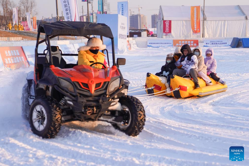 CHANGCHUN, 6 enero, 2026 (Xinhua) -- Imagen del 5 de enero de 2026 de turistas tomando un paseo en trineo de nieve en un parque, en Changchun, en la provincia de Jilin, en el noreste de China. Changchun ha creado una variedad de paisajes distintivos de hielo y nieve en toda la zona urbana este invierno para atraer a los turistas y fomentar el consumo. (Xinhua/Xu Chang)