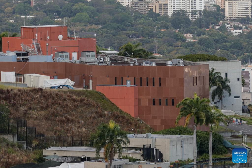 Imagen del 9 de enero de 2026 de las instalaciones de la Embajada de Estados Unidos, en Caracas, Venezuela. El Gobierno de Venezuela decide iniciar un "proceso exploratorio de carácter diplomático con el Gobierno de Estados Unidos", orientado al restablecimiento de misiones diplomáticas en ambos países, informó el viernes el canciller venezolano, Yván Gil. (Xinhua/Str)