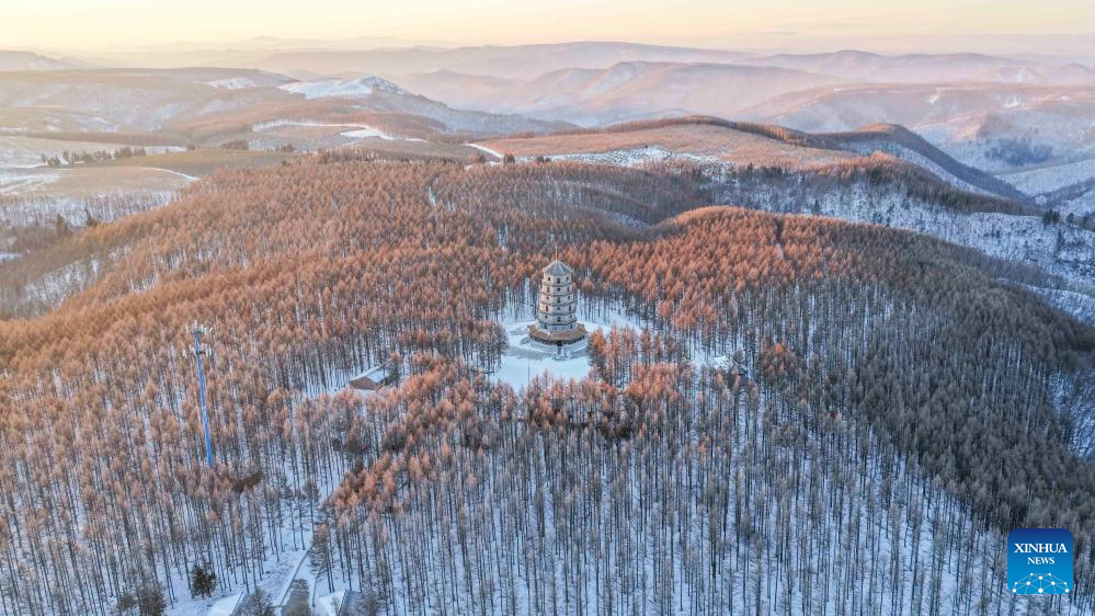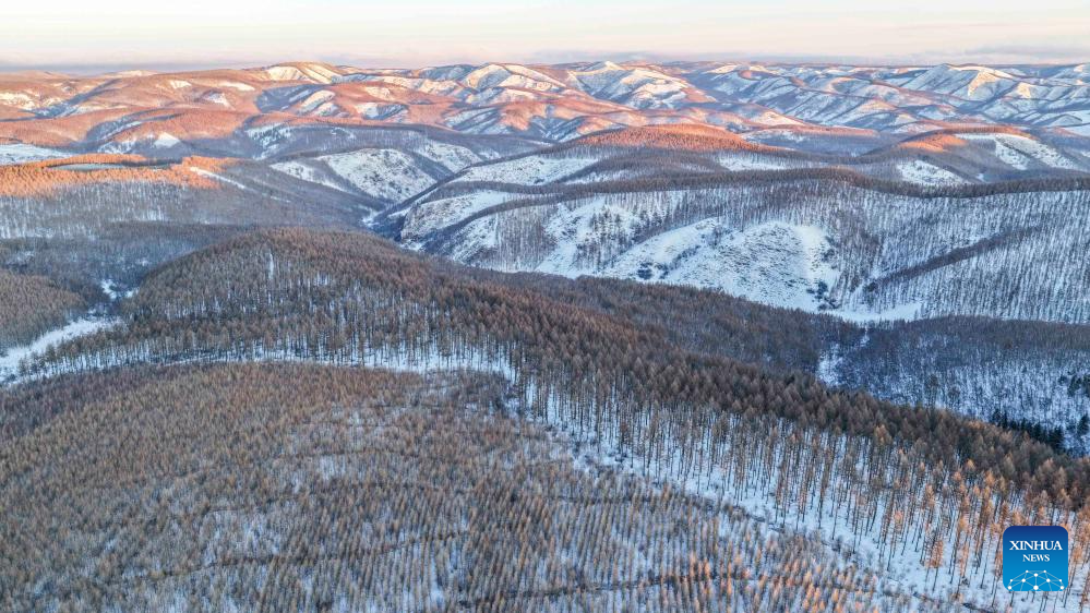 CHENGDE, 10 enero, 2026 (Xinhua) -- Vista aérea tomada con un dron el 10 de enero de 2026 del paisaje invernal en la reserva natural nacional de Saihanba, en la ciudad de Chengde, en la provincia de Hebei, en el norte de China. (Xinhua/Liu Mancang)